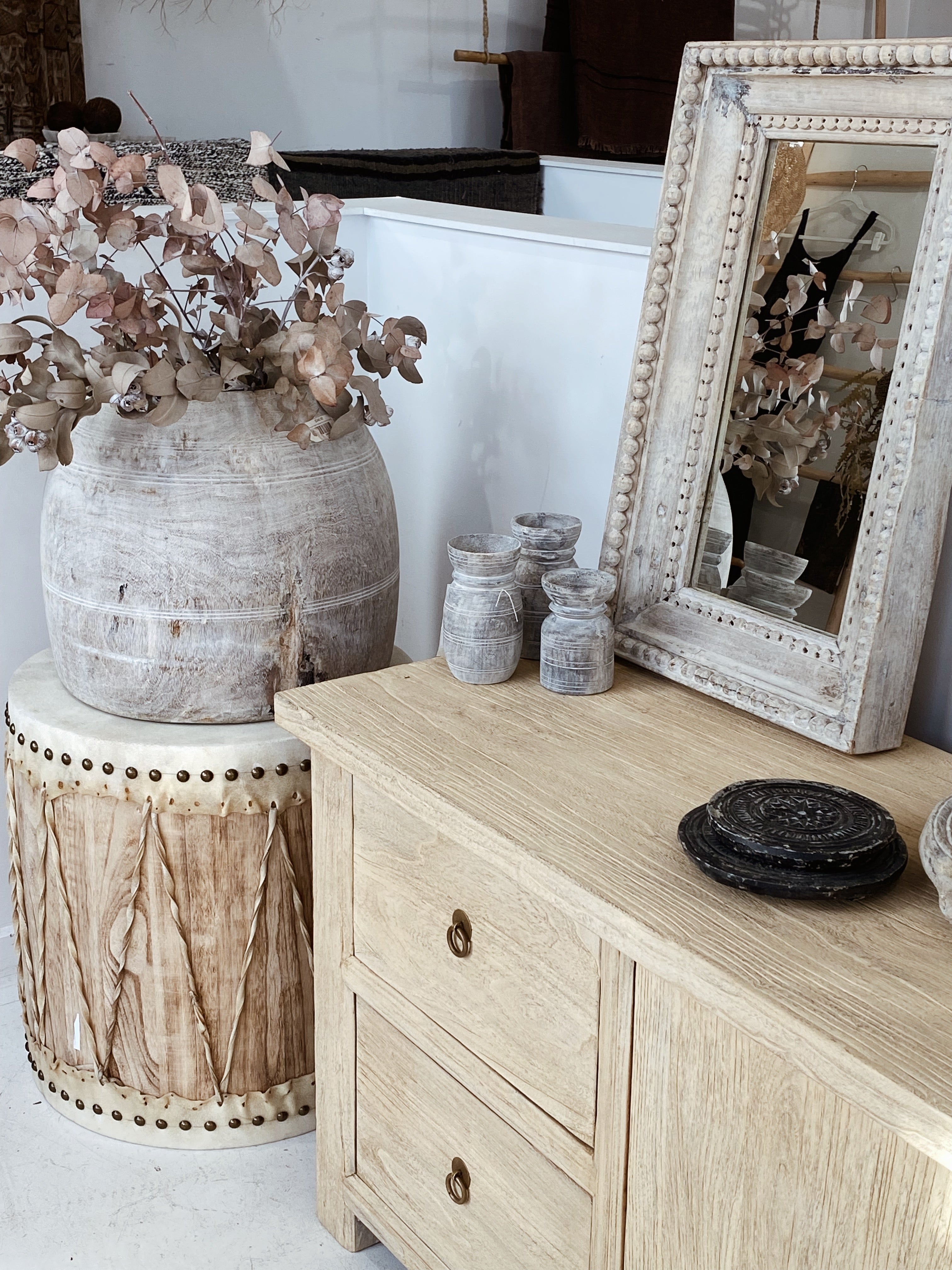 Make a statement with our traditional Chinese drums, natural tone and textures make up it?s beauty and is the perfect piece to dress up any space. each drum is hand finished and completed with leather top and bottom.