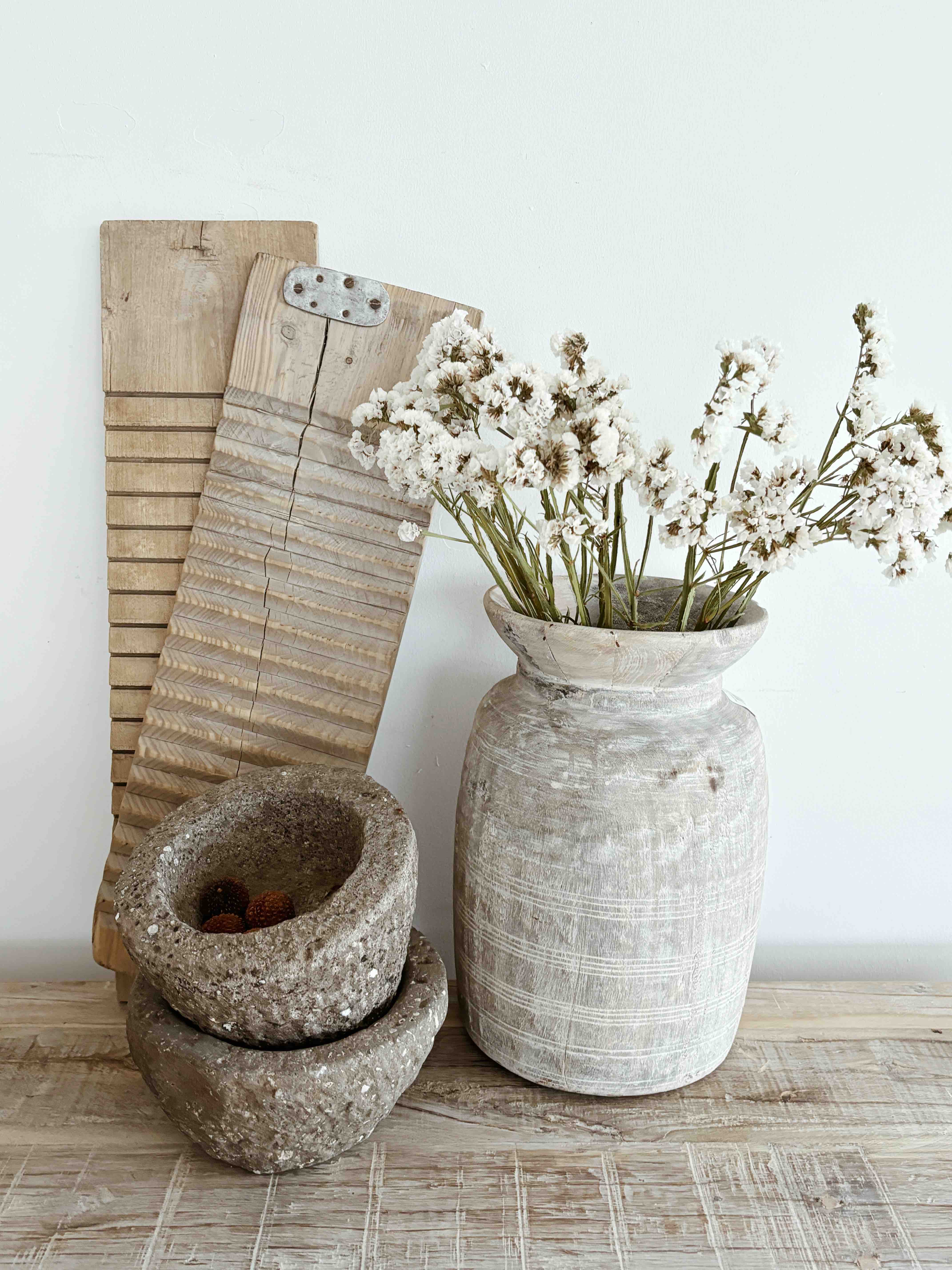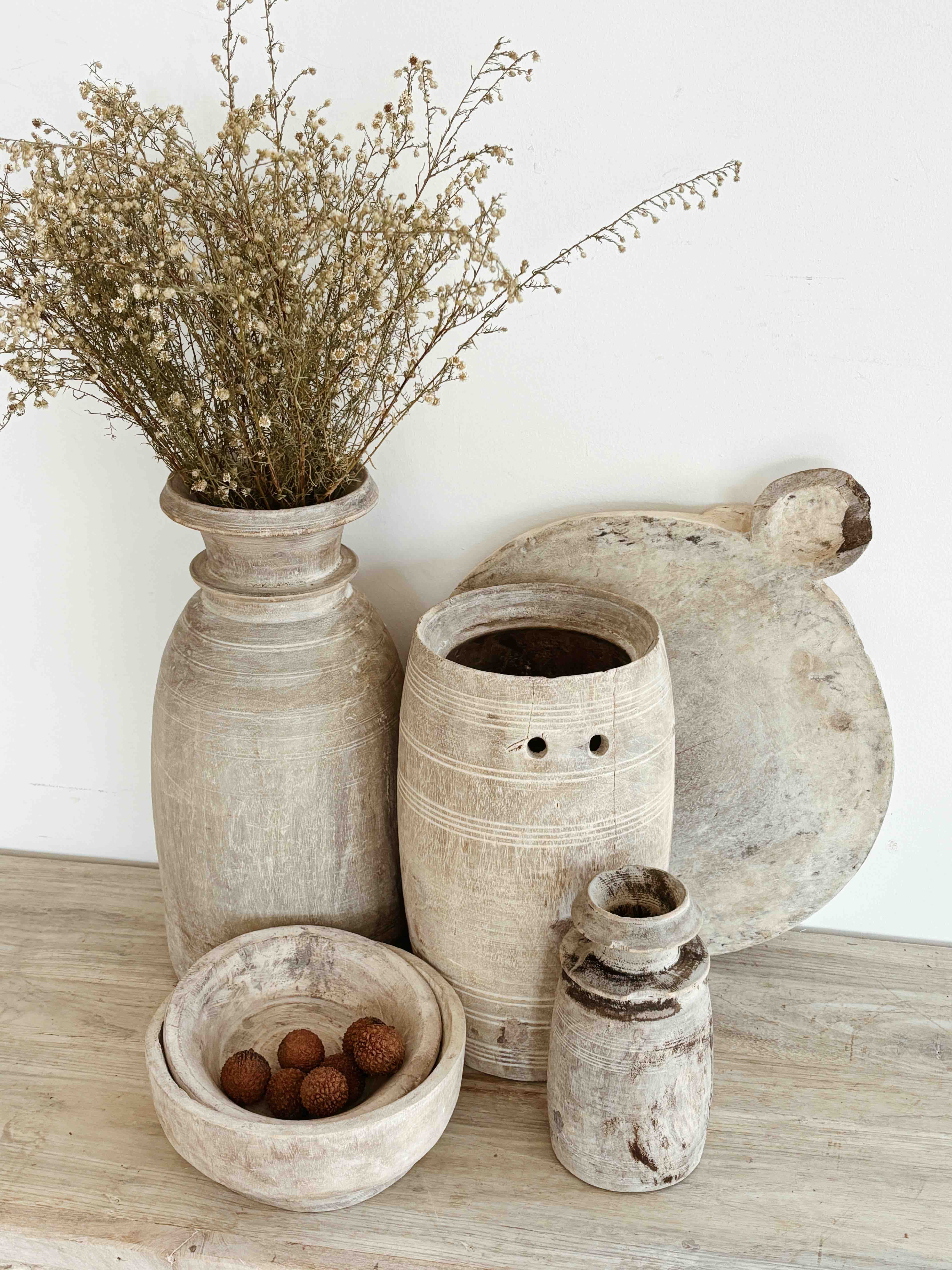 Our Vintage Indian Bottle Pots are made from teak making them perfect for indoor and outdoor use. Originally used in Village kitchens in north India, a perfect piece within your abode to create a statement.