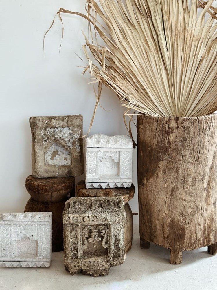 The Vintage Indian Stone Aala are carved from a solid stone, they look perfect in a cluster on a wall or stand alone.